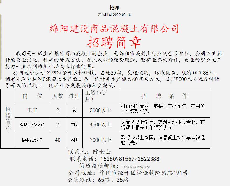 綿陽建設(shè)商品混凝土有限公司